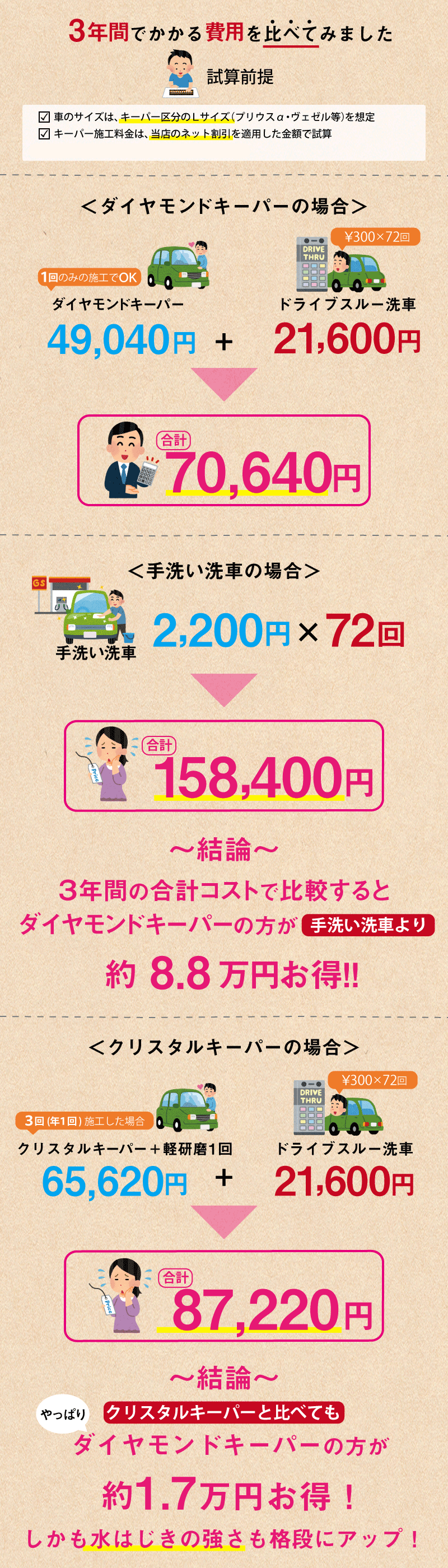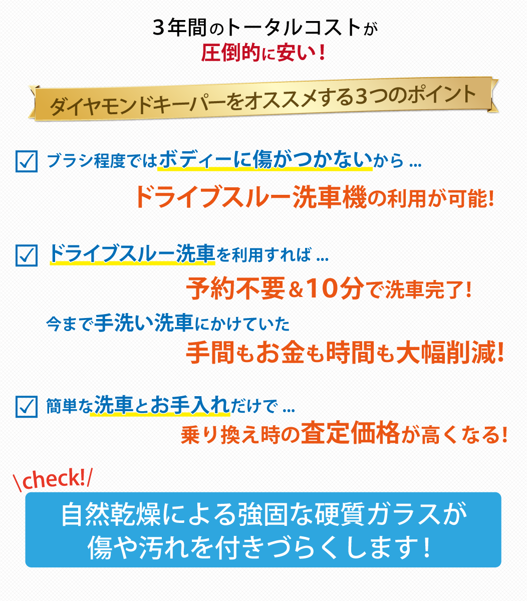 カーディーラーや車販売店のコーティング料金より断然お得!